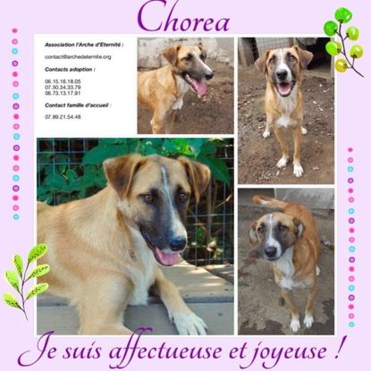 Chorea est une chienne calme, adorable, gentille et sociable. Elle vient prendre des caresses et apprécie les gourmandises. Elle est très contente d'avoir de la visite dans son box .