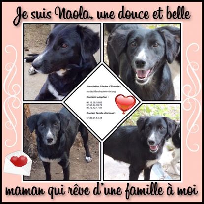 Naola est une chienne gentille, calme et sociable. Elle est très timide, il faut prendre du temps pour l'habituer à se laisser toucher afin qu'elle soit en confiance. Elle se trouve actuellement en refuge..