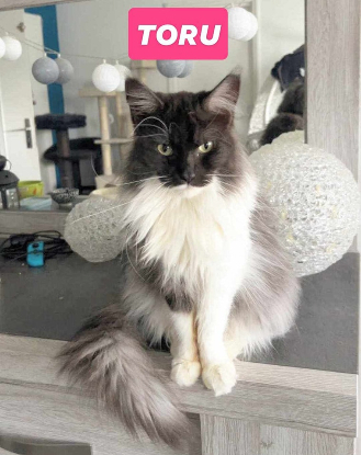 Tôru est une Maine coon très calme, elle a besoin d’une famille qui connaisse la race. Elle n’est pas spécialement ok avec ses congénères.