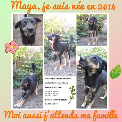 Maya est une gentille chienne, douce et calme, un peu craintive mais se laisse tout à fait manipuler. A quand une super famille pour cette belle chienne ? En plus elle a un gabarit sympa !!!