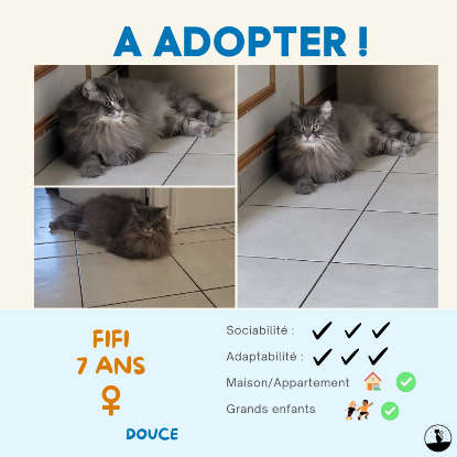 Pour Fifi nous cherchons une famille disposant d’un jardin ou bien d’un balcon. C’est impératif pour elle, car elle a déjà l’habitude de prendre des bains de soleil en terrasse. Fifi n’est pas compatible avec ses congénères chats, elle préféra l’exclusivité de ses humains. Fifi aime beaucoup la présence humaine, mais sera rapidement agacée par la présence d’enfants en bas âge. Enfin, Fifi est autonome en journée, mais réclamera beaucoup d’attention pour des câlins !