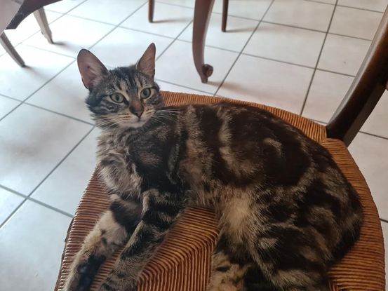 Cheryl est une minette marbrée aux yeux en amande d'environ 2 ans Elle a le gabarit d'une minette de 5-6 mois mais son cœur est immensément grand cœur. Légèrement sur la réserve au premier abord, elle se laisse aller au ronronnement dès les premières caresses. Elle a besoin d'une famille calme car si trop de monde ou de bruit, elle stresse et se cache. Il lui faudra un jardin. Elle est stérilisée et identifiée par tatouge. Si vous êtes intéressée par cette minette au physique de jeune première, contactez Alexia au 06.01.78.15.34 , et rencontrez la sur Montélimar.