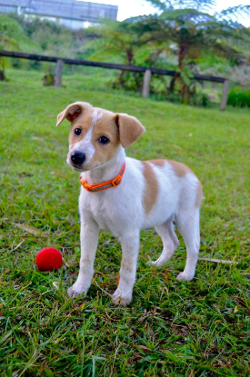 Love est âgée de 3 mois. Elle sera de taille moyenne à l'âge adulte.
