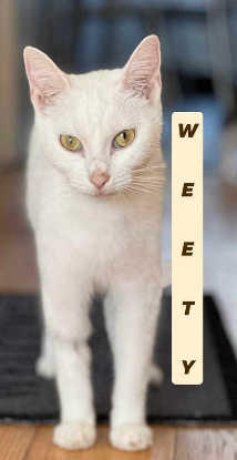 Jeune chatte blanche d’un an, Weety est la douceur incarnée.