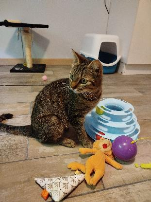 Blue, petite puce de 2 ans. Arrivée suite à un abandon c'est une petite minette très attachante.