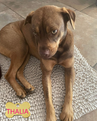 Thalia est très sociable avec les humains. Elle est très affectueuse et elle adore les enfants. Elle s’entend avec ses congénères. Elle n’est pas ok chats.