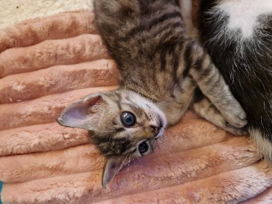 Le petit Vaïko a été trouvé dans un jardin avec sa fratrie. Il venait de naître. Il a été pris en charge par une famille d'accueil. Il a 2 mois à présent. Il est à la fois plein de vie et très affectueux.