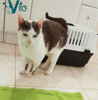 Chat errant qui nous vient d'un hôpital psychiatrique où il avait trouvé refuge mais celui-ci ne pouvait pas le garder. Nous avons répondu à l'appel et avons récupéré VITO.