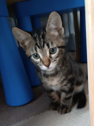 Vroum s'est très vite adapté au biberon et a bien grandi près de sa famille d'accueil. Aujourd'hui, il mange comme un grand, pâtée et croquettes. Grâce aux bons soins et à l'amour qu'il reçoit, il est bien dans ses coussinets et c'est un chaton dynamique. On le pensait timide mais il aime partir à l'aventure pour découvrir les autres pièces et les autres chats de la maison. C'est un fonceur. Il est relativement indépendant mais ne rechigne pas quand c'est l'heure des câlins. Mais attention, il ne lui faut pas des séances interminables sous la contrainte. Vroum comme tous les chatons aime les séances de jeux, seul ou avec sa soeur Vanille.