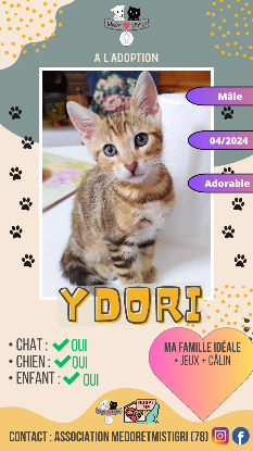? Ydori est un super chaton plein de vie, joueur, champion de l'escalade qui aura besoin de présence et d'attention.