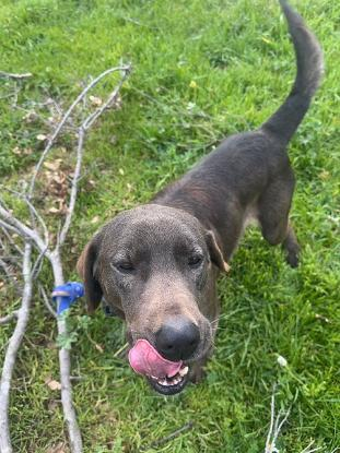 PHOENIX est un croisé Labrador et Braque, il est né en avril 2021, il est castré, vacciné et déparasité. Il est identifié sous puce électronique n°900193000219272. Il pèse 20kg.