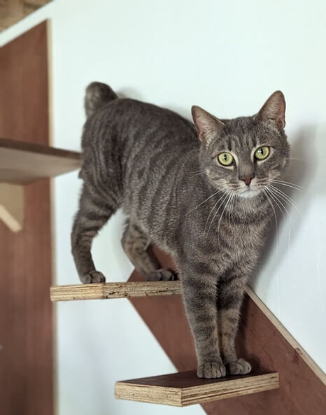 Moshi et un beau chat gris prêt à partir dans son nouveau foyer.