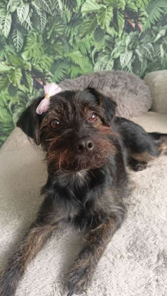 Cali est une croisée yorkshire/border terrier née le 15 aout 2022 et pèse 7 kilos.