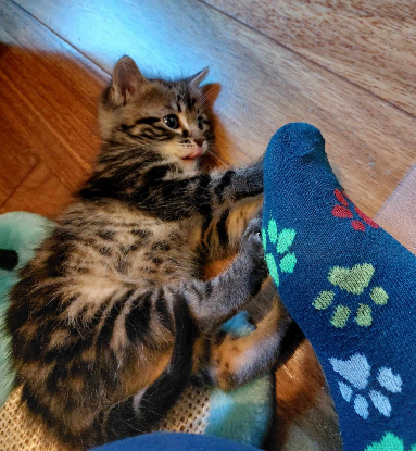 Zora grandit paisiblement auprès de sa maman Tara, de Yoda et de Yuki. Et on n'oublie pas les câlins et les caresses de sa famille d'accueil. Elle est désormais en toute sécurité après avoir connu quelques temps les dangers de la vie dehors. La présence d'un autre chat dans son futur foyer ne sera pas nécessaire. Mais vous pouvez aussi craquer pour une adoption avec sa maman, sa soeur ou son frère. Sa famille d'accueil ne possède pas de chien. Compte tenu de son âge et avec des présentations en douceur, tout devrait bien se passer si vous en avez un. Un extérieur pour Zora n'est pas utile. Elle est déjà bien habituée à la vie en appartement. A partir du moment où vous lui apportez de l'amour, de la présence et que vous remplissez bien sa gamelle, Zora sera une formidable louloute au quotidien. Il lui faudra son petit coin à elle avec son espace jeux et un arbre à chats. Zora ne sera pas disponible avant ses 3 mois. Elle va profiter de l'amour et de l'éducation de sa maman Tara.