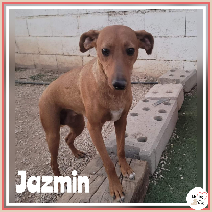 JAZMIN est une petite chienne timide au début quand elle ne connait pas. Une fois en confiance, elle devient une chienne très affectueuse.
