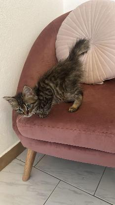 Léo est très joueur et câlin avec les humains. Il adore jouer avec les autres chatons et s’entend parfaitement avec les chiens et chats de la famille. Il connaît également très bien la litière.