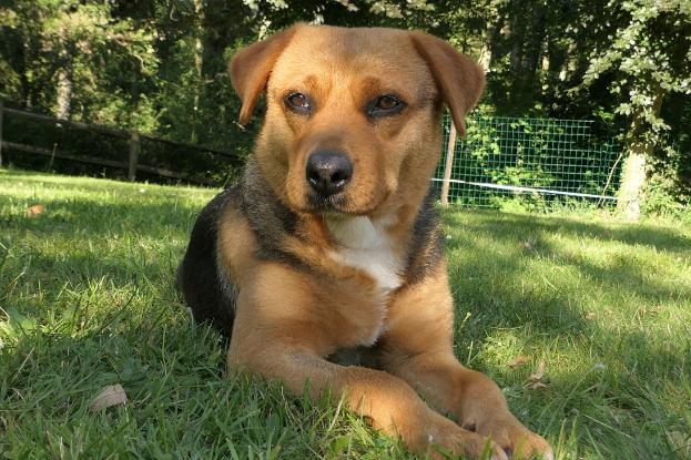 Laya pèse 18 kilos (taille moyenne, courte sur pattes) et est âgée de trois ans.