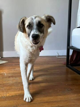 Il a pu rester seul en compagnie dès chiens de sa FA et à sauté dans les bras de celle-ci à son retour.