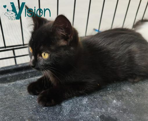VISION est une perle noire à découvrir! C'est un GRAND joueur, il joue avec tout ce qu'il trouve. Très espiègle, c'est un vrai petit clown qui mettra de la joie au sein de votre foyer. De nature timide, le jeu et la gourmandise seront vos alliés pour vous lier avec lui. Lorsque VISION est fatigué, il apprécie de se blottir contre vous pour dormir confortablement.