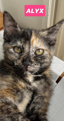 Alyx est une petite chatte téméraire et très très câline. Toujours la première pour découvrir un nouveau jeu ou un nouvel espace, elle aime dormir contre vous et ronronne beaucoup dès la première caresse.