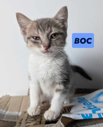 C’est un chaton plutôt calme, mais cela peut-être parce qu’il a été plus malade que les autres, et que guérir prend du temps.