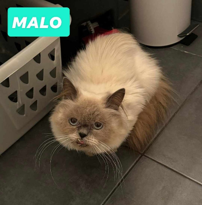 Sous son aspect grognon et parfois intimidant, Malo cache un cœur en or. Malgré un passé difficile et quelques craintes encore visibles, il n’est en aucun point rancunier. Il est à la recherche d’affection et aime recevoir des caresses, même s’il aime faire semblant d’être indifférent. Malo aime être porté et se blottir contre vous, malgré son allure parfois punk et rebelle. Son beau pelage cache un petit joueur qui n’attend que de se révéler. Une fois à l’aise, il vous suivra partout, curieux de tout ce que vous faites. Malo est un compagnon affectueux qui saura vous apporter beaucoup de joie et de moments de complicité. Il est idéal pour une famille appréciant un chat au caractère bien trempé mais profondément loyal.
