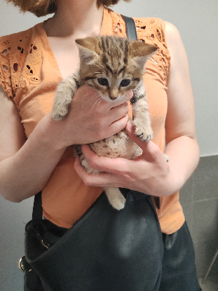 Bala (250269591399207) gentille chatonne tigrée et blanche née le 19/05/2024, identifiée, vermifugée, vaccinée et traitée antiparasites, est réservable dès maintenant pour une adoption prévue en août après sa stérilisation.