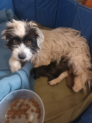 Elle a été hospitalisé suite à une toux importante et son état général affaiblit. Ses chiots sont morts avant d'aller chez le vétérinaire. Elle est revenu en forme le 19 juin 2024 au refuge.
