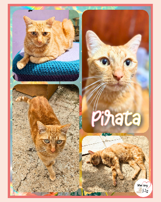 PIRATA est arrivé au refuge en même temps que trois autres chats : Charron, Donatella et Juaquin. Ils viennent d'une famille qui a demandé à ce qu'on prenne soin d'eux le temps que leur situation s'améliore. Malheureusement, cela n'a pas été le cas et ils sont maintenant à la recherche d'une nouvelle famille.