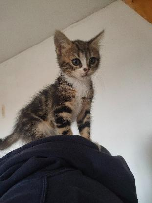 Petite femelle (250 26 95 91 01 38 56) marble et blanc née le 12/05/2024 a été abandonnée avec sa fratrie et sa maman elle est très câline et sociable.