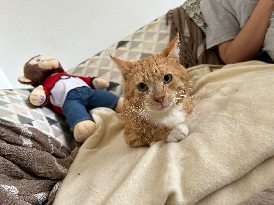 Mise en confiance, il aime le contact et les caresses. Il est doux , ronronne et ne sort jamais les griffes. C’est un amour de chat abandonné que le parking d’un macdonalds il est monté tout seul dans la voiture de notre bénévole