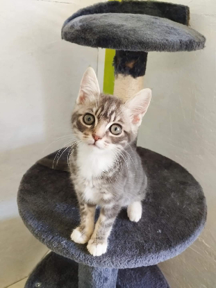 Douce est une chatonne à l'aise dans ses pattounes.