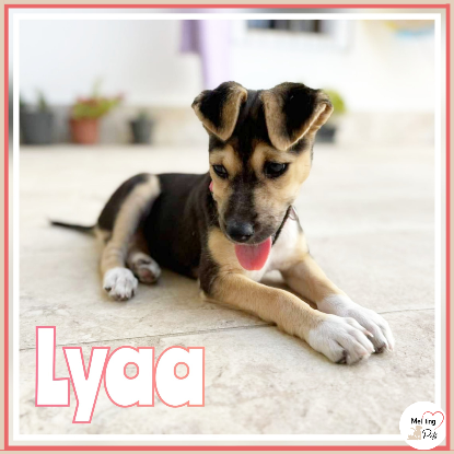 LYA a été récupérée avec ses frères et sœurs dans la rue. C'est une adorable petite puce, très sociable, douce, affectueuse, joueuse.