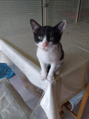 C'est un chaton très sympa qui a une petite particularité puisqu'il lui manque un morceau de queue.