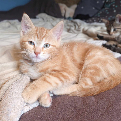 Chaton femelle, type Européen, coloris rousse tigrée rousse. Née le 2 mai 2024