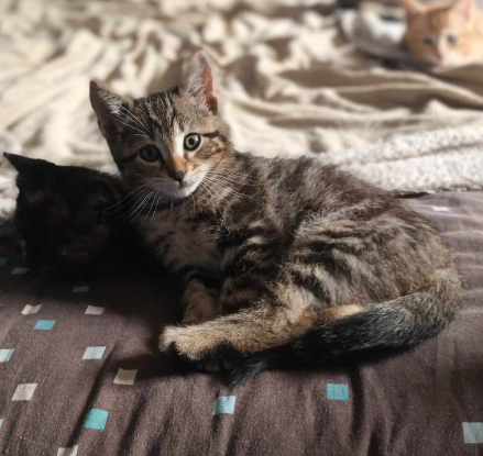 Chaton mâle, type Européen, coloris tigré. Age : environ 2 mois