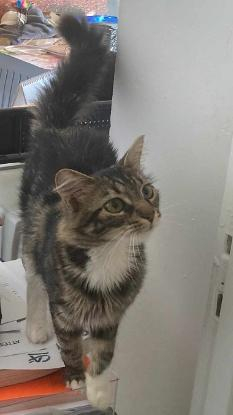 Chaton femelle, type Européen, coloris tigrée, poil mi long. Née le 8 janvier 2024