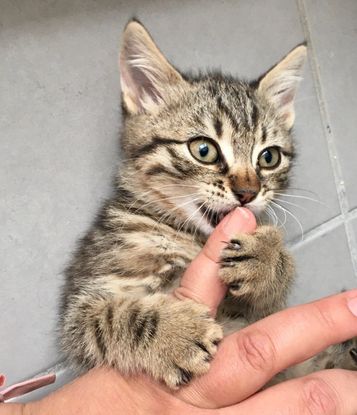 LIORA, 2 mois est observatrice, un peu plus réservée et réfléchie, mais on peut la câliner sans problème et elle se laisse vite bercer par les papouilles. Son "point faible" c'est le jeu ! Alors là elle perd sa retenue, tout en gardant un petit œil à ce qu'il se passe autour? Et elle a une petite bouille toute ronde trop craquante ! ? Il faudra que son humain prenne un peu le temps de créer une belle confiance ❤️