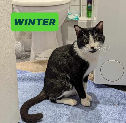 Winter est timide, il reste dans un premier temps dans son coin. De la douceur et de la patience pourra le rassurer avant de sortir de sa cachette.