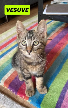 Vésuve, adorable chaton tout doux et très affectueux, il adore jouer, la course poursuite avec ses balles assurée et également avec ses copains chats avec qu'il s'entend très bien, il est toujours prêt pour une partie de cache-cache avec eux.
