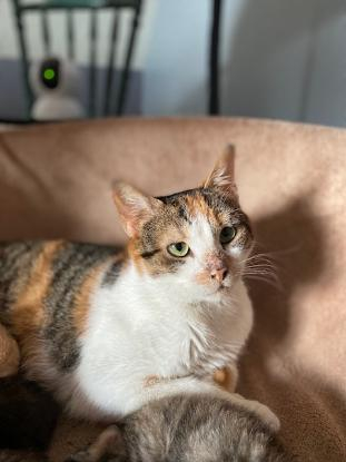 Australe recherche elle aussi sa famille. C'est une minette très calme, très douce, craintive quand elle ne connait pas, les gestes brusques lui font encore peur. Elle est gourmande de pâtée et de friandises. Elle s'entend bien avec les autres chats (chien pas encore testé). Pas joueuse, elle préfère faire de gros dodos sur le lit ! Elle apprécie les caresses mais n'aime pas être portée pour l'instant, elle est hyper sage en voiture !