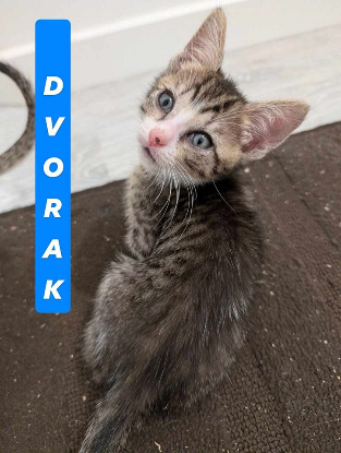 Petit mâle qui aime se faire entendre. C'est lui qui viendra vous accueillir pour vous souhaiter la bienvenue et peut être aussi pour vous rappeler qu’il est l'heure de manger ! Dvorak est une chaton affectueux et qui demande de l’attention. Joueur, gourmand, câlin et propre.