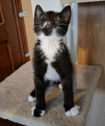 Cet adorable chaton a été retrouvé avec la patte arrière cassé. Il peut partir à l'adoption, mais uniquement autour de Romorantin afin d'être suivi par notre vétérinaire pour la consolidation de sa patte. (Visites prises en charge par l'association).