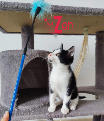 ZEN est un chaton débordant de vie, il adore jouer. Espiègle, il est plein de malice. ZEN aime les câlins et aussi la pâtée ? Une chose est sûr : vous ne vous ennuierez JAMAIS!