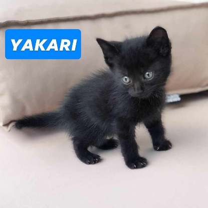 Petit mâle tout noir : il est calme et posé, un peu pataud et pas trop débrouillard. Il miaule beaucoup pour demander des câlins ou quand il voit un humain, tant qu'il a pas eu son câlin dans les bras il crie... C'est super mignon car il vous regardera avec tant d'amour ! Il aime beaucoup le contact de l'humain petit et grand, ronronne très vite, il aime les longues parties de jeu, aime beaucoup explorer et se faufiler dans vos pattes en mode incognito pour visiter !