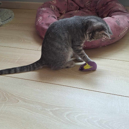 Notre petite boule de poils grise est une minette douce et qui aime les câlins. Elle vient se blottir sur les genoux de notre famille d'accueil et profite bien des câlins ?