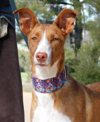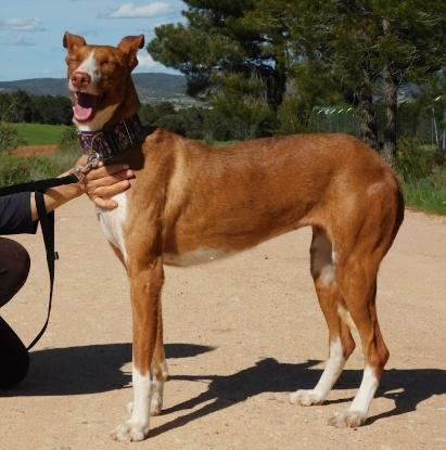 Turia est devenue magnifique et a beaucoup changé : elle est arrivée très marquée par son abandon mais elle est aujourd’hui splendide et ne laisse personne indifférent. C’est une podenca fofolle, très énergique, joueuse, active… Elle adore pister (instinct de chasse) et au refuge elle est obsédée par les souris. En balade, elle n’arrête pas de regarder de partout et d’essayer de suivre les odeurs, mais c’est agréable de se promener en sa compagnie. Elle se laisse faire chez le vétérinaire, mais elle a très peur quand ce sont des inconnus qui la manipulent. En voiture elle est parfaite.