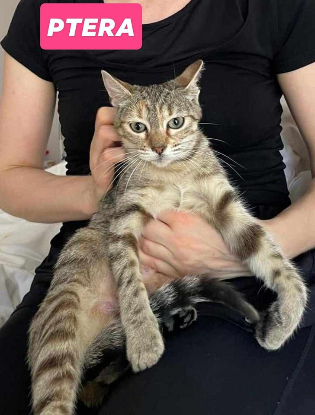 Magnifique adolescente avec très beau pelage, Ptéra est sociable avec les autres chats mais à besoin de temps pour être en confiance avec les humains. Elle adore la compagnie des autres chats et participe à leurs jeux.