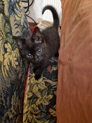 Je suis une adorable petite chatte de 1 mois et demi. J'ai des yeux ronds comme des billes, je suis pleine de vie, j'adore jouer