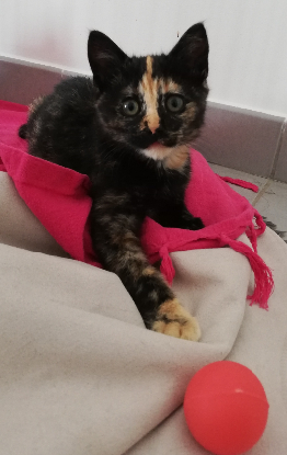 Venise est une adorable petite chatonne de 2 mois, très câline, tout en étant un peu plus indépendante et en ayant le petit caractère connu des Ecailles de Tortue.
